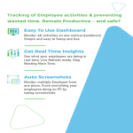 Tracking Employee activities and preventing wasted time, Remain Productive – and safe. Screenshots are captured automatically and will be generated in high quality. You can define the intervals from 3 Min to as per your needs You will know what applications are used by the employee during work time. This will give a clear report about what he is using